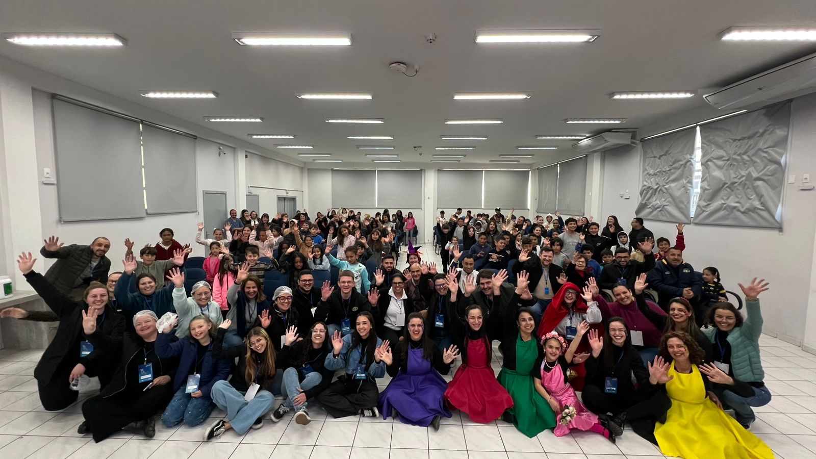 Na tarde de quinta-feira, 31 de agosto, o auditório e os corredores do SENAI em Lages se encheram de sorrisos, sons de brincadeiras e o cheiro acolhedor de pipoca recém-feita. Era a Festa da Alegria ganhando vida, uma iniciativa do Comitê dos Guardiões de Bem-Estar, Saúde e Voluntariado do SESI/SENA, integrante do Programa EU Voluntário da Fiesc, que proporcionou momentos inesquecíveis a mais de 100 crianças e adolescentes atendidos pela Irmandade Nossa Senhora das Graças.