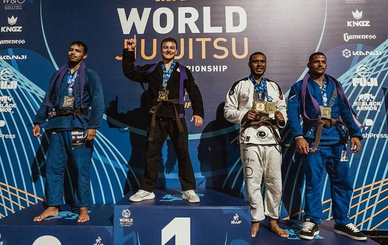 Aos 17 anos, o jovem peso pluma da AOJ venceu gigantes no Mundial da International Brazilian Jiu-Jitsu Federation, em Long Beach, e se tornou o primeiro atleta da categoria até 64 quilos a conquistar o Absoluto na faixa roxa