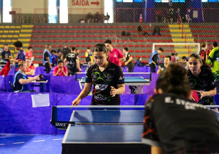 Com mais de 450 atletas de 36 municípios, evento marca o maior campeonato de tênis de mesa do Brasil em número de participantes; Ginásio segue recebendo jogos até domingo