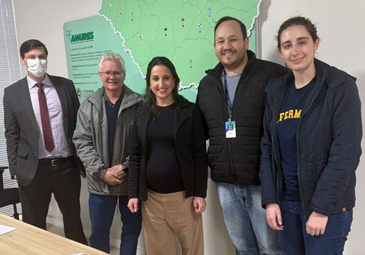 O secretário executivo da Amures, Walter Manfroi, recebeu na tarde dessa segunda-feira (15), a Coordenadora do Núcleo de Educação Permanente e Humanização em Saúde – NEPHS da Secretaria da Saúde de Lages e Articuladora da Comissão de Integração Ensino-Serviço – CIES, da Serra Catarinense, Franciele Spolti Lorenzetti Miguel, o diretor executivo HNSP, Éder Gonçalves, o enfermeiro CER II, André Roberto Faria e a Estagiária de Enfermagem, Isabella Klock, para tratar sobre o apoio da Amures à campanha.