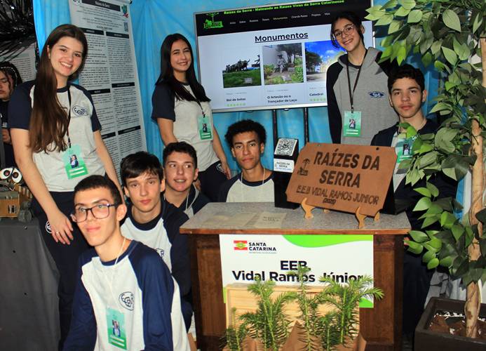 A fase regional do evento aconteceu no ginásio da Escola de Educação Básica Vidal Ramos Júnior e reuniu quase 60 trabalhos concorrentes. Durante a feira, os estudantes do projeto distribuíram mudas de araucária com a mensagem: “Plantar uma árvore é oferecer um presente duradouro à vida e deixar um legado para o futuro.”