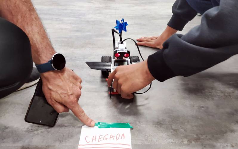 A oficina foi conduzida pelo professor João Francisco Frank Gil, conhecido como “Moderno”, que explicou a proposta da atividade. “Eles tiveram que montar um carro do zero, feito com um Lego especial que vem da Dinamarca. É um equipamento totalmente diferente, com motor e programação precisa. A brincadeira foi fazer com que o carro saísse de um ponto e chegasse ao outro com exatidão.”