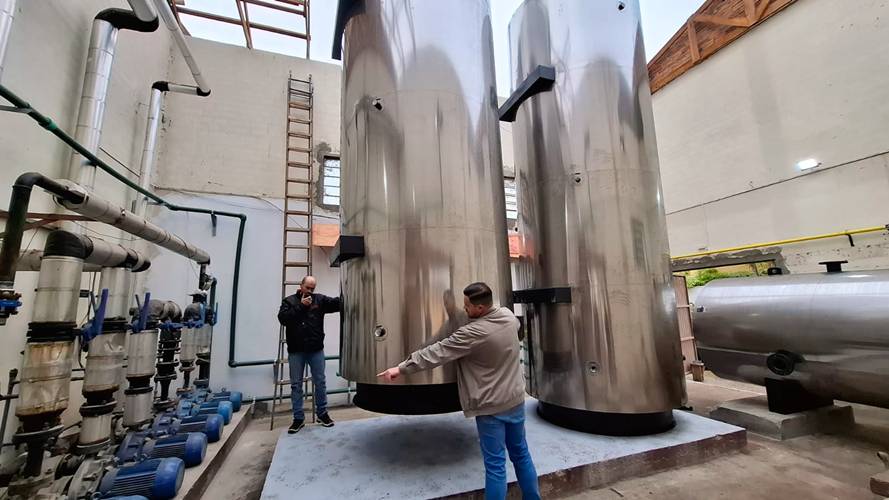 Geradora de Água Quente para Calefação de Ambientes sendo posicionada na central de aquecimento