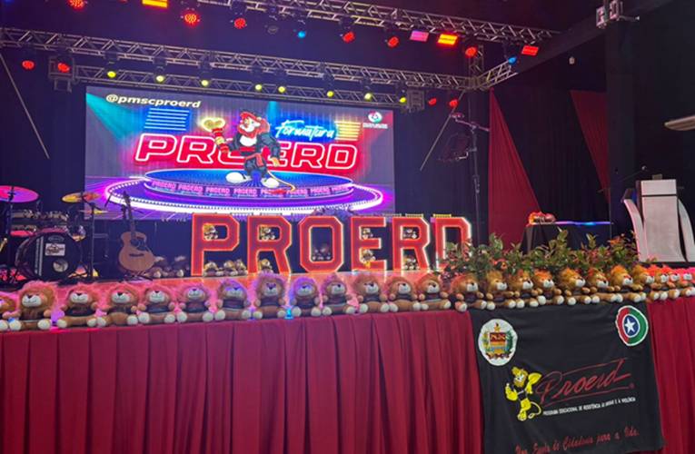 Cerca de 2,5 mil estudantes do 5º ano do Ensino Fundamental do Sistema Municipal de Educação e redes estadual e particular de ensino de Lages participam de formatura do Programa Educacional de Resistência às Drogas e à Violência (Proerd). As formaturas estão acontecendo no Centro Serra Convention Center.