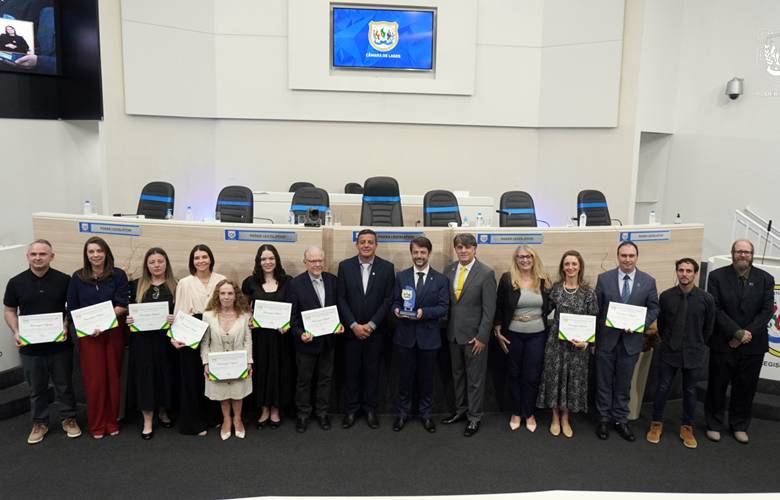 Proposta pelo vereador Álvaro Joinha (Progressistas), a Sessão Solene foi marcada por homenagens, como o totem personalizado da Câmara de Lages representando o reconhecimento da comunidade Lageana aos serviços prestados pela instituição, bem como certificados oficiais a quem fez e faz parte dessa história.