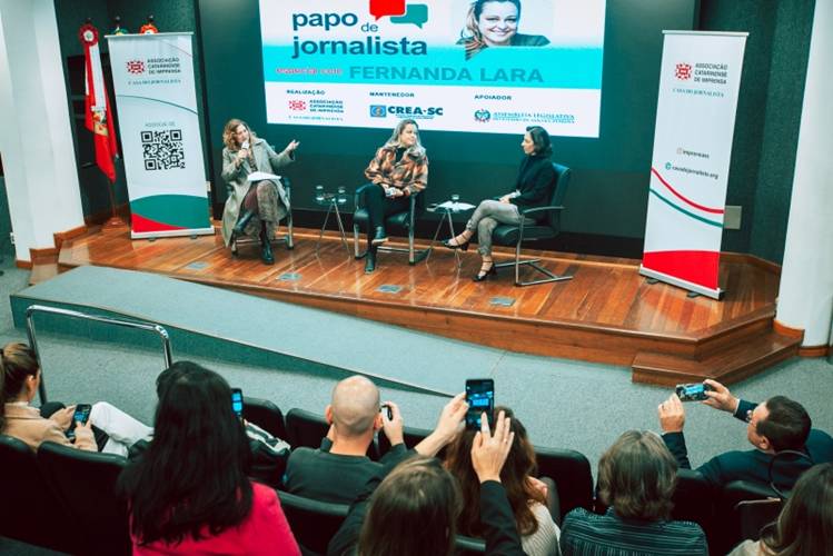 O Papo de Jornalista desta quarta reuniu diversos profissionais da imprensa local ao Plenarinho Deputado Paulo Stuart Wright, na sede do Parlamento Catarinense. A ação é promovida pela ACI e conta com o apoio do Conselho Regional de Engenharia e Arquitetura de Santa Catarina (Crea-SC) e da Assembleia Legislativa. O evento foi mediado pela presidente da ACI, a jornalista Deborah Almada.