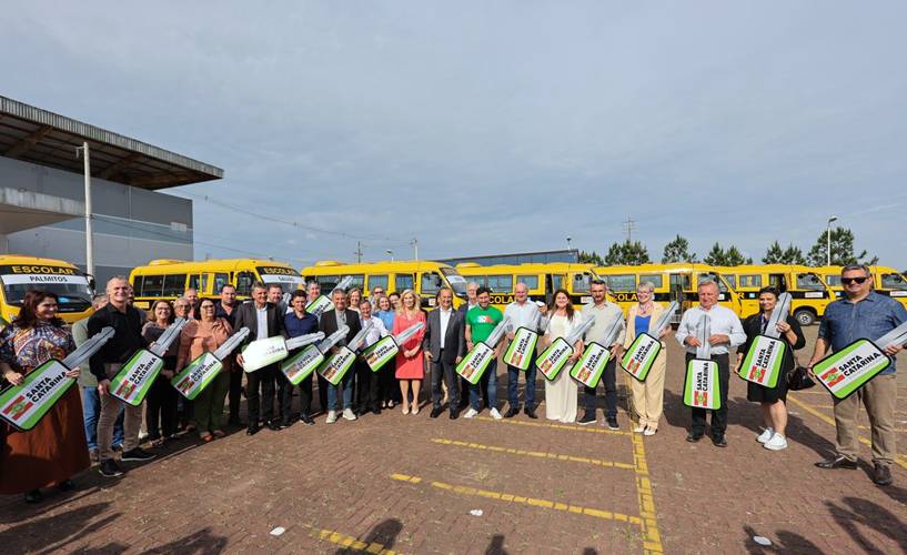 O governador Jorginho Mello e a secretária de Estado da Educação, Luciane Ceretta, entregaram 20 ônibus escolares para as redes públicas de ensino de Santa Catarina, nesta quinta-feira, 13. O evento, realizado em Florianópolis, representa a primeira etapa da iniciativa que distribuirá, ao todo, 100 novos veículos até o início do ano letivo de 2026.